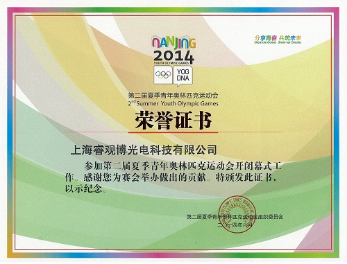 青奧會榮譽證書2014第二屆夏季青奧會