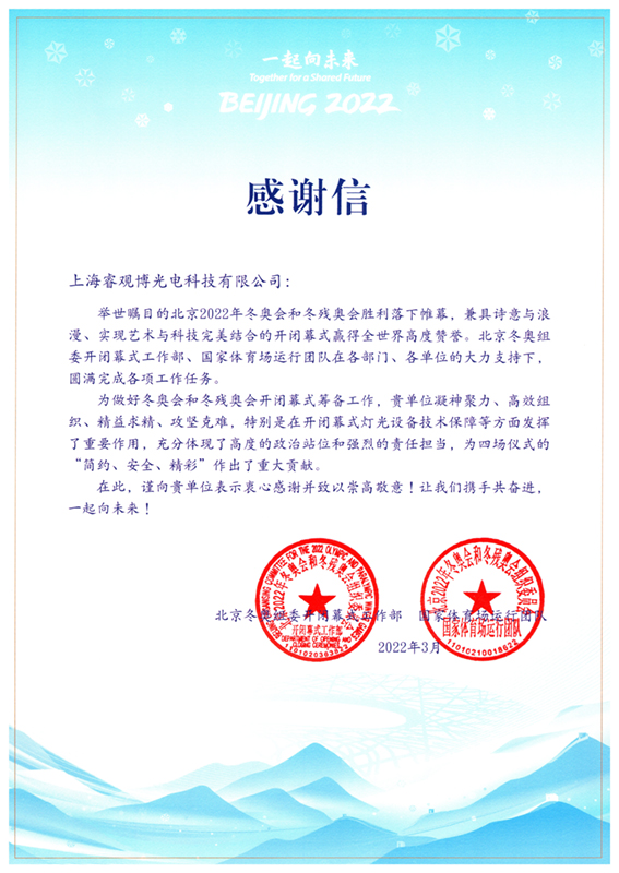 冬奧組委感謝信冬奧組委感謝信