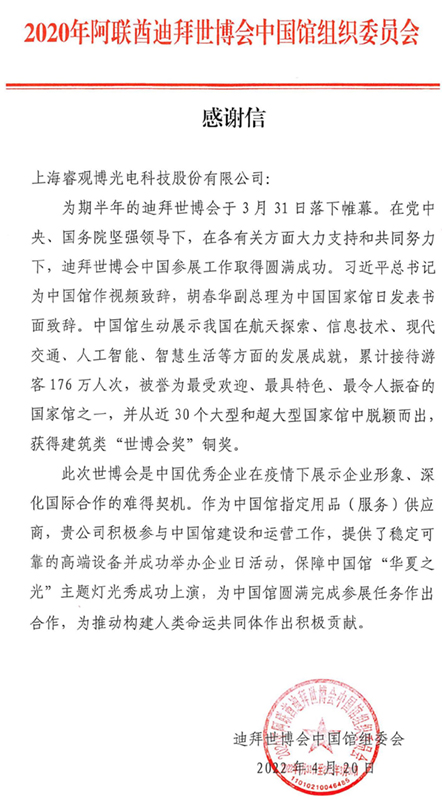 迪拜世博感謝信迪拜世博感謝信
